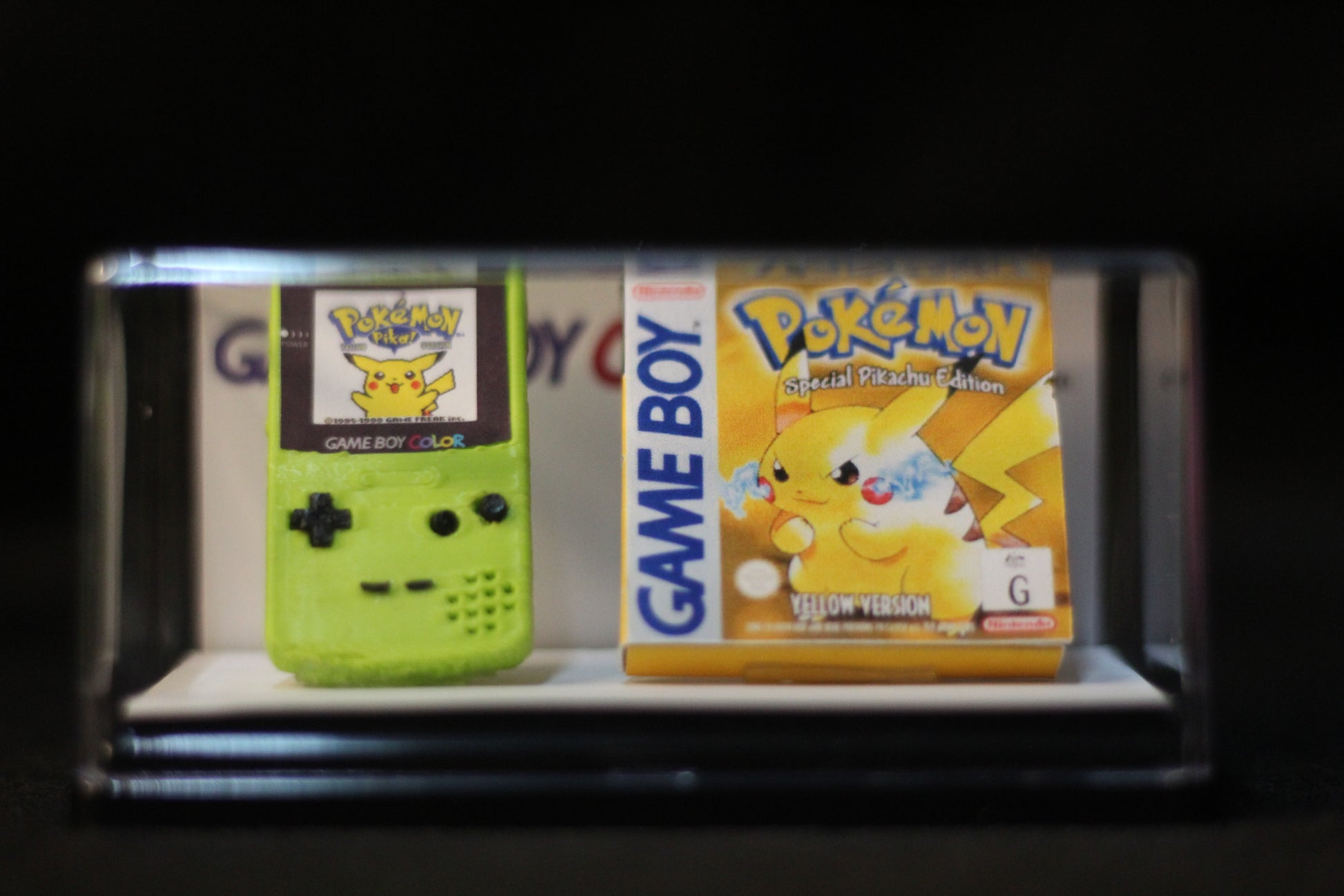 Miniatura Game Boy Color colecionável, impressa 3D com alto nível de detalhes.
