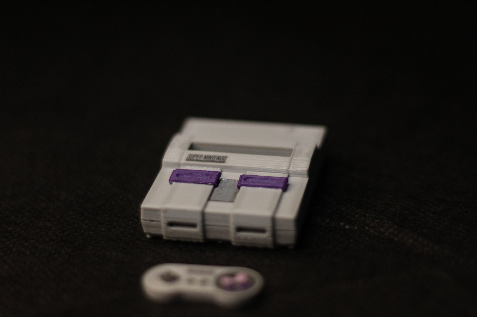 Miniatura Super Nintendo colecionável, impressa 3D com alto nível de detalhes.